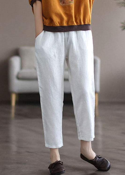 Beautiful White Elastic Waist Solid Linen Harem Pants Summer