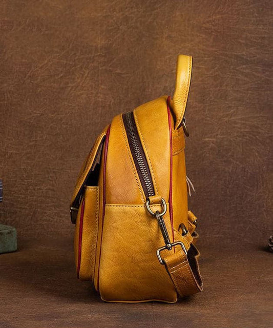 Beautiful Yellow Embossing Paitings Calf Leather Backpack Bag
