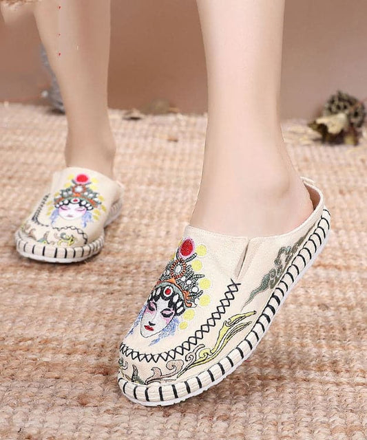 Blue Linen Fabric Unique Bei jing opera Embroideried Slide Sandals