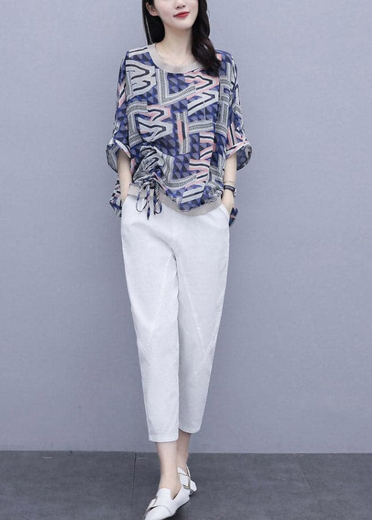 Blue Print Top And Pants Two Pieces Set Summer