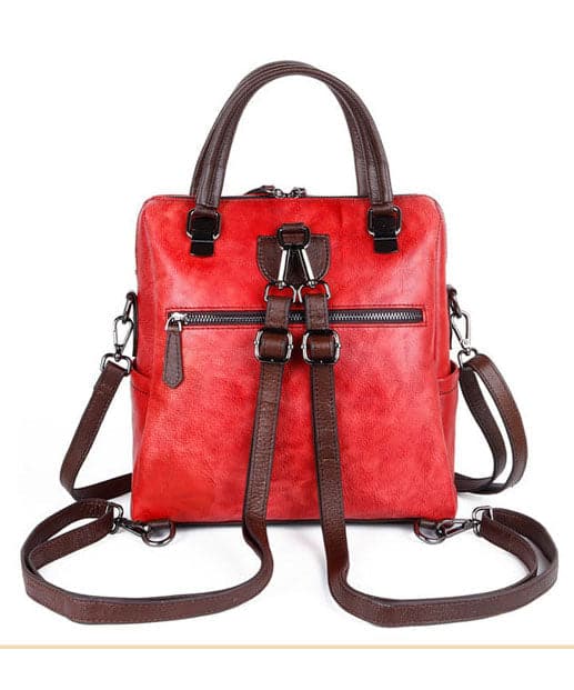 Casual Red zippered Paitings Calf Leather Backpack Bag