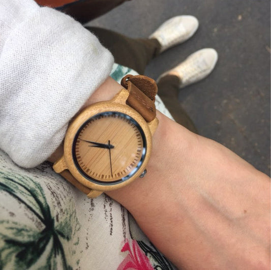 Casual Quartz Watches with Natural Bamboo Watch Face for Lovers