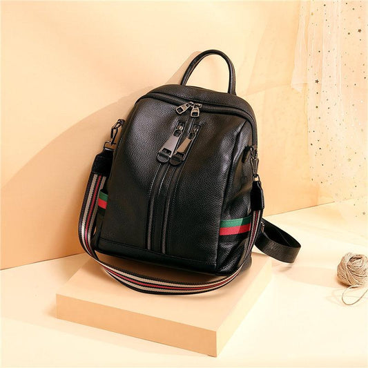 Casual Style Women's Solid Genuine Leather Travel Shoulder Bag Backpack