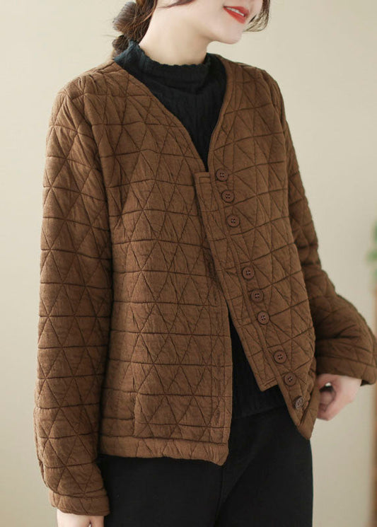 Chocolate Fine Cotton Filled Winter Coats V Neck Button Winter