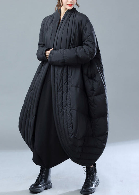 Chocolate Oversized Duck Down Down Jacket Stand Collar Zippered Winter
