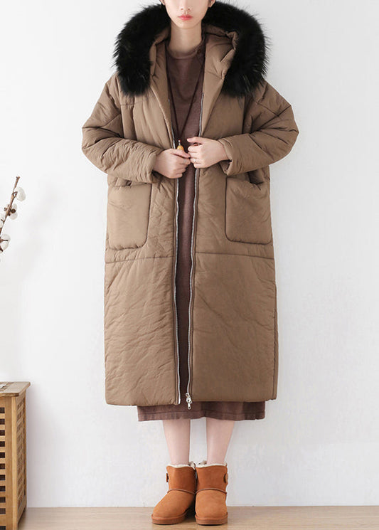 Chocolate Zippered Thick Hooded Maxi Parka Winter