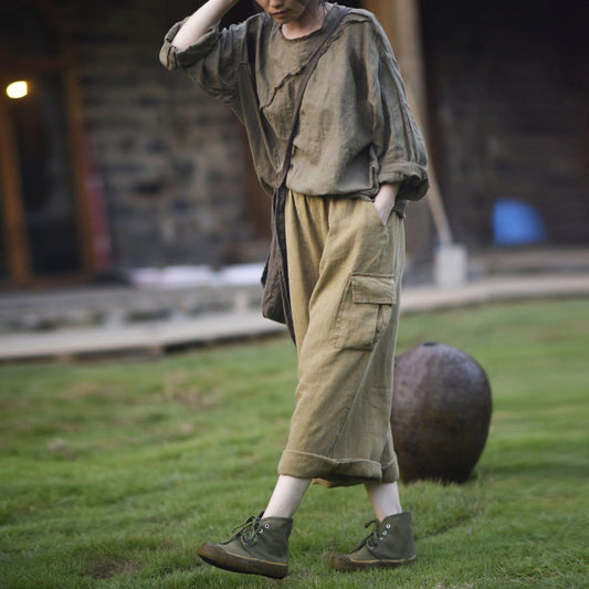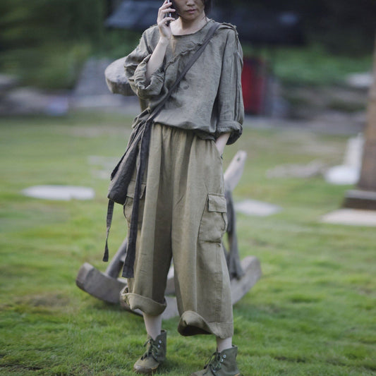 Chyou Wide Leg Casual Linen Trousers | Lotus