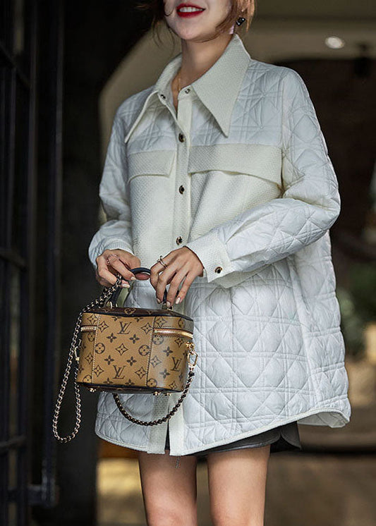 Chic Khaki Peter Pan Collar Patchwork Duck Down Puffer Coat Winter
