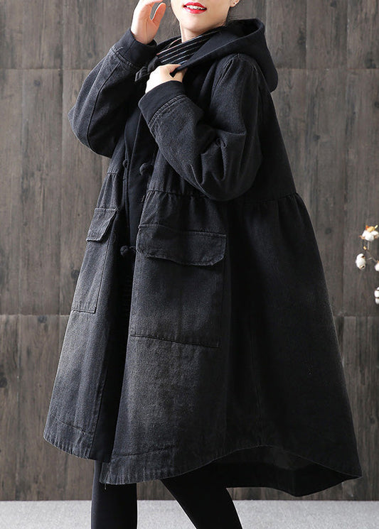 Casual black down coat winter plus size hooded Button Down coats
