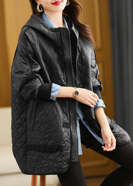 Casual Chocolate Hooded Oversized Drawstring Thick Canada Goose Jacket Batwing Sleeve