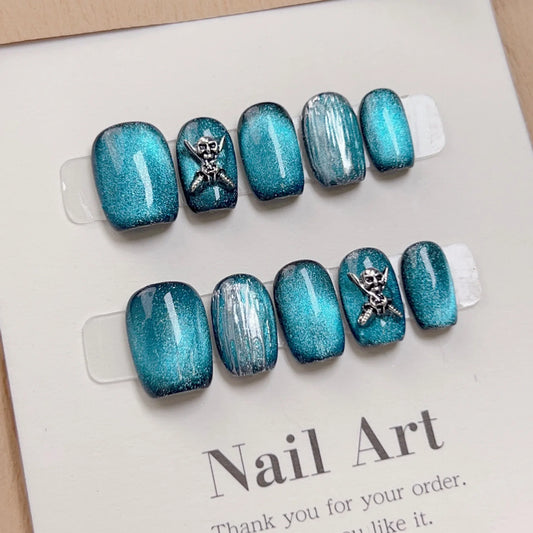 Short Demon Cat Eye Handmade False Nails With Designed High Quality Wearable Punk Acrylic Press on Nails For Professionals