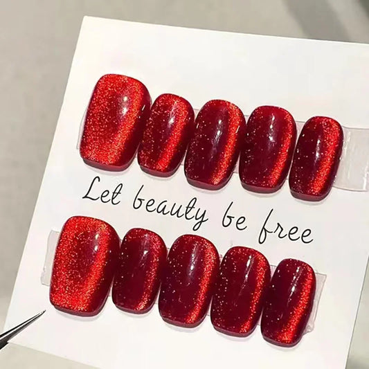 10 pcs Handmade Fake Nail Detachable Short Style Cat Eyes False Nails Tips Reusable Press On Nails Coffin Manicure Art