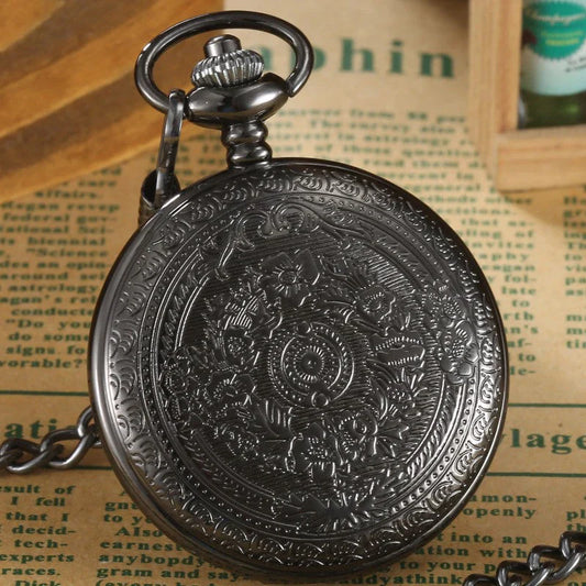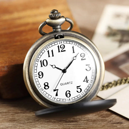 Unisex Retro Elegant Black Matte Surface Quartz Movement Pocket Watch