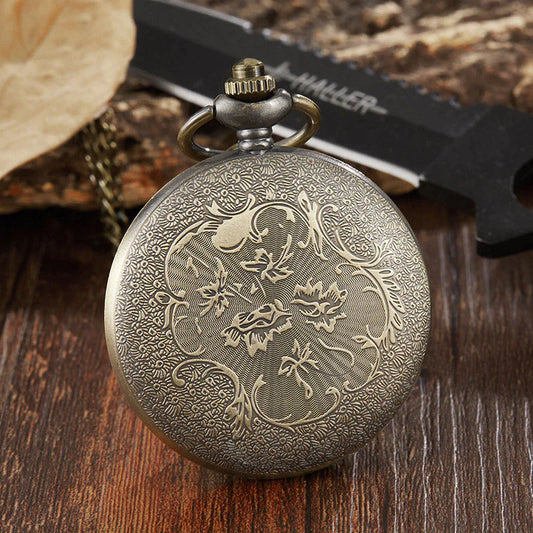 Unisex Antique Retro Hollow Laser Engraved Bronze Quartz Pocket Watch