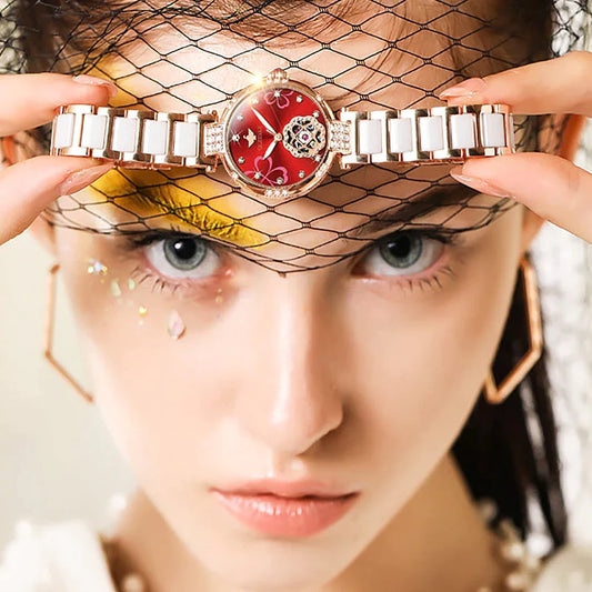 Diamond Embellished Automatic Self-Wind Skeleton Watch for Women
