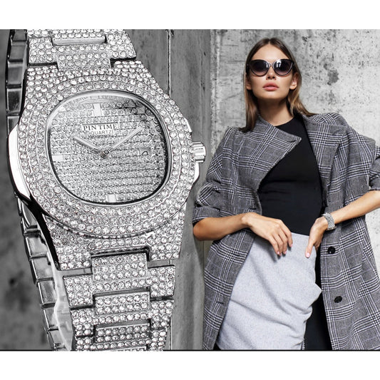 Women's Luxury Rhinestones Stainless Steel Hip Hop Charm Jewelry Watch