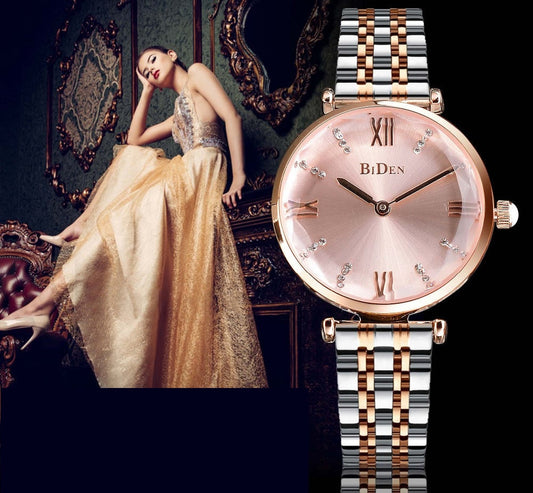 Women's Fashion Quartz Movement Rhinestone Decor Stainless Steel Watch