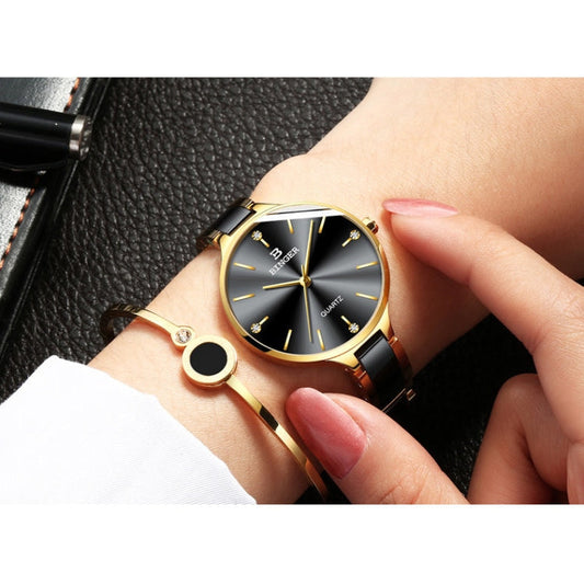 Women's Quartz Movement Ceramic Band Water Resistant Wrist Watch