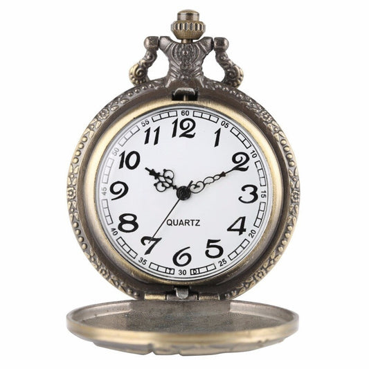 Retro Unisex Transparent Art Pattern Open Face Quart Pocket Watch
