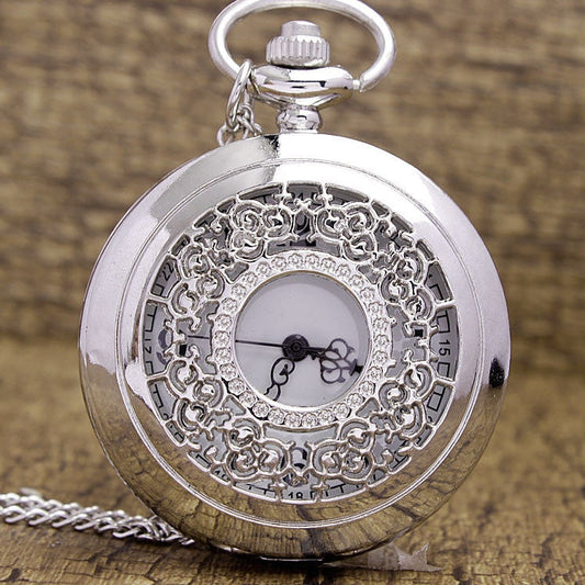 Unisex Retro Crystal Necklace Pendant Chain Quartz Pocket Watch