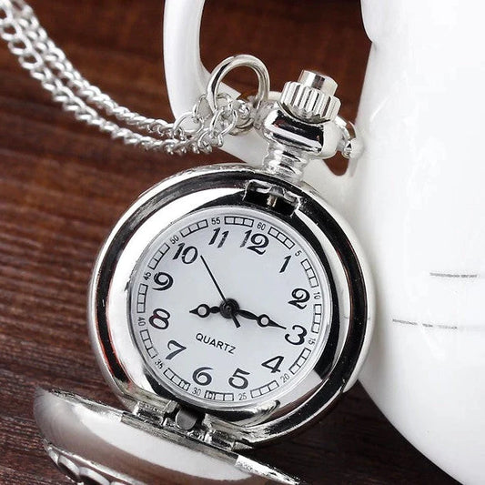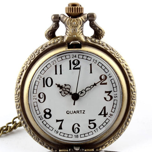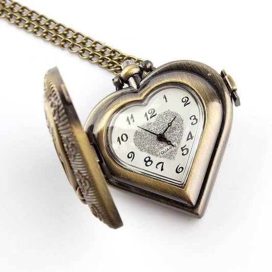 Unisex Vintage Hollow Necklace Chain Heart-shaped Quartz Pocket Watch