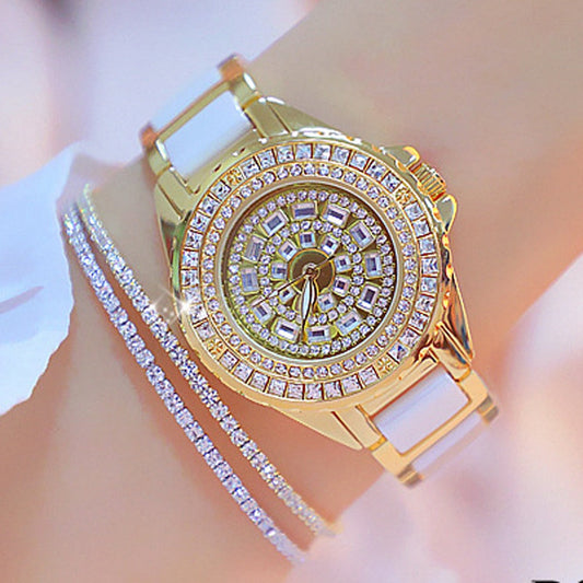 Women's Elegant Quartz Analog Ceramic Stainless Steel Water Resistant Watch