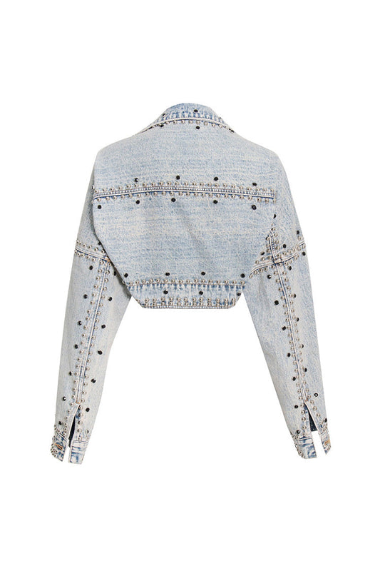 Retro Drop Shoulder Long Sleeve Open Front Studded Crop Denim Bolero Jacket