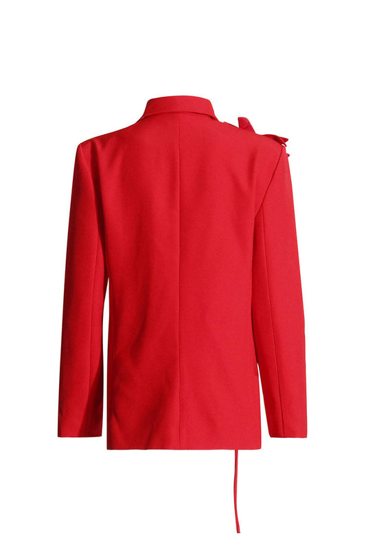 Romantic Rosette Off Shoulder Long Sleeve Single Breasted Cinch Waist Blazer