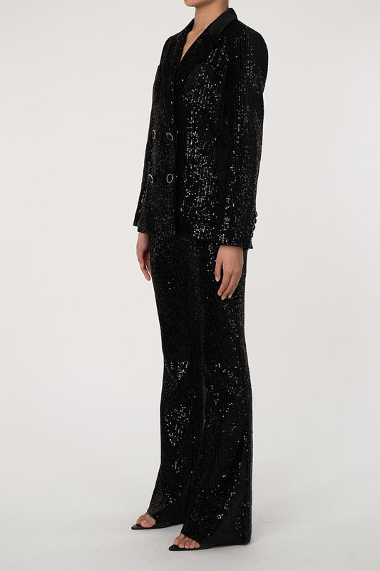 Sparkly Sequin Double Breasted High Waist Flared Pant Two Piece Blazer Set