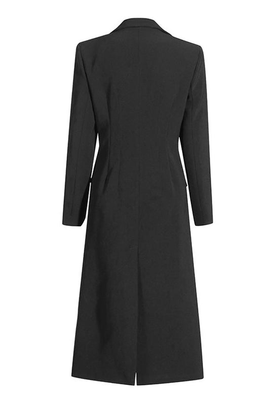 Smart Buckle Strap Shoulder Pad Cinch Waist Button Down Long Tailored Blazer
