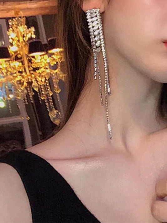 Geometric Rhinestone Tassel Party Earrings MSE00139