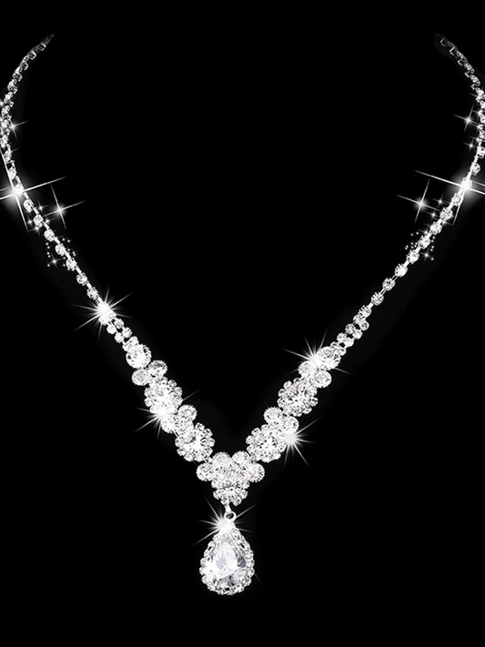 Missord Shiny Pear Cut Stone Necklace Earring Set MRL1022