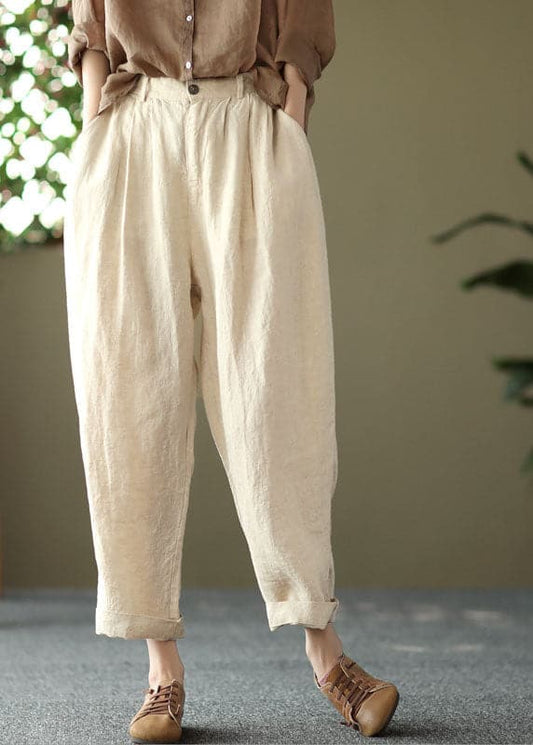 Coffee Loose Linen Harem Pants Elastic Waist Drawstring Summer