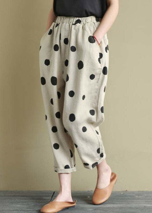 Natural Yellow Elastic Waist Summer Linen Harem Pants