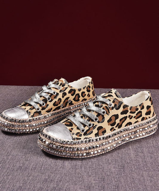 Dark Leopard Print Flat Shoes Cotton Fabric Boutique Lace Up Flat Shoes For Women