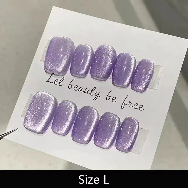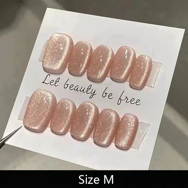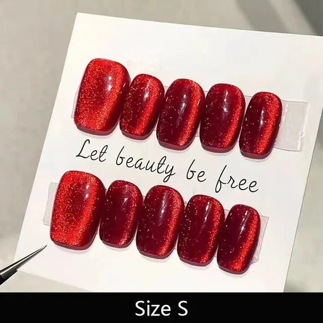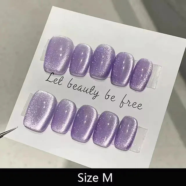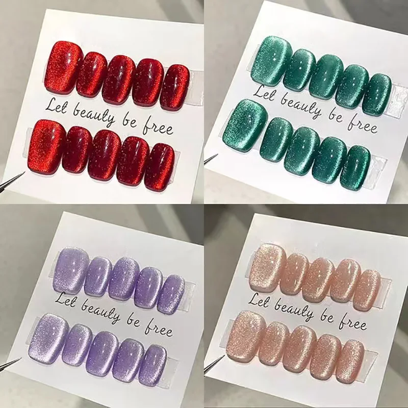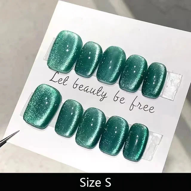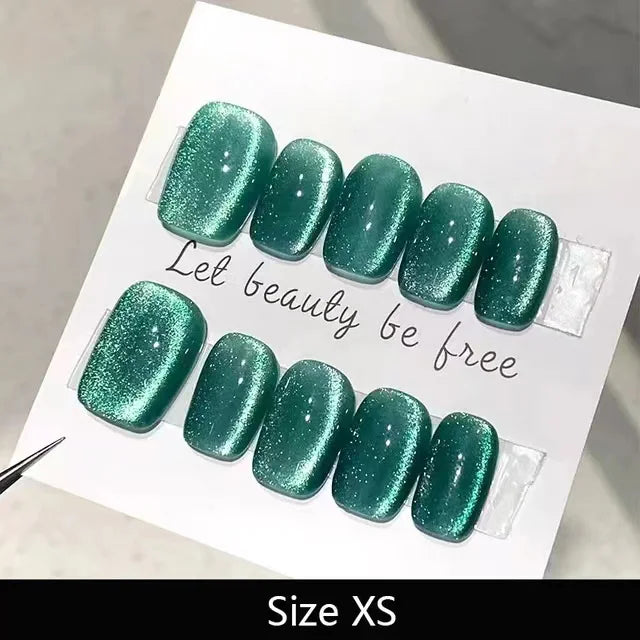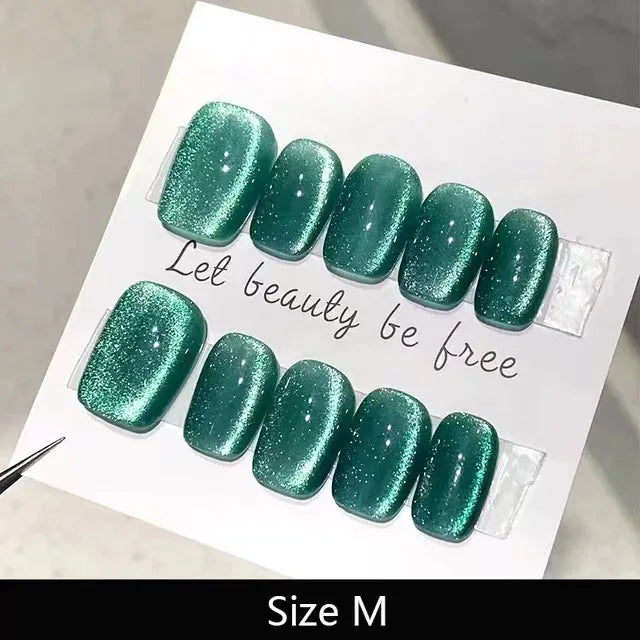 10 pcs Handmade Fake Nail Detachable Short Style Cat Eyes False Nails Tips Reusable Press On Nails Coffin Manicure Art