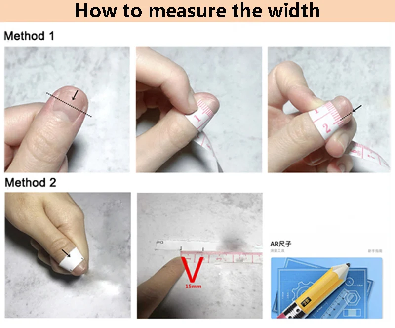 S size and M size for normal fingers, and L size for large nails. If you want a standard point,please measure it according to the method we provide.