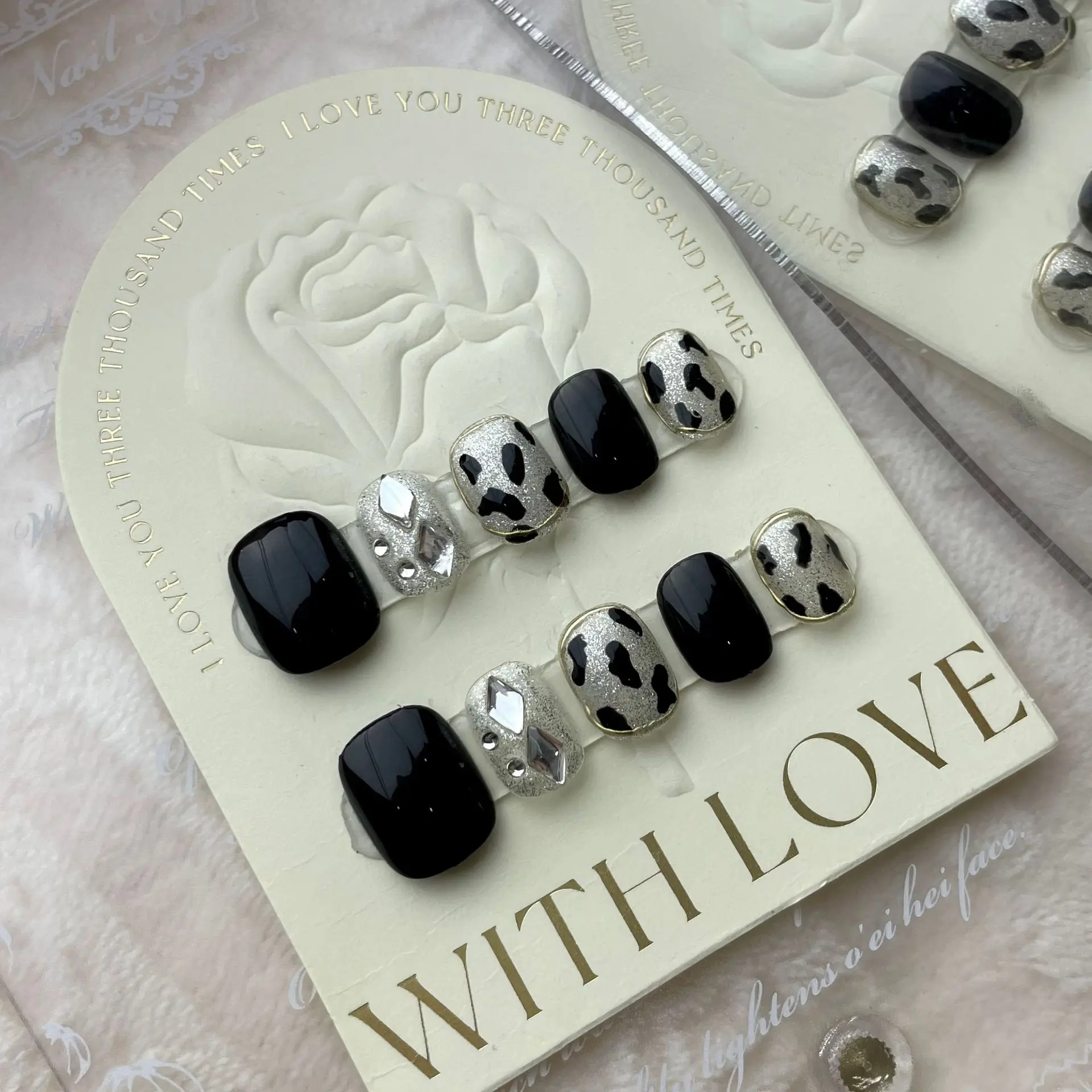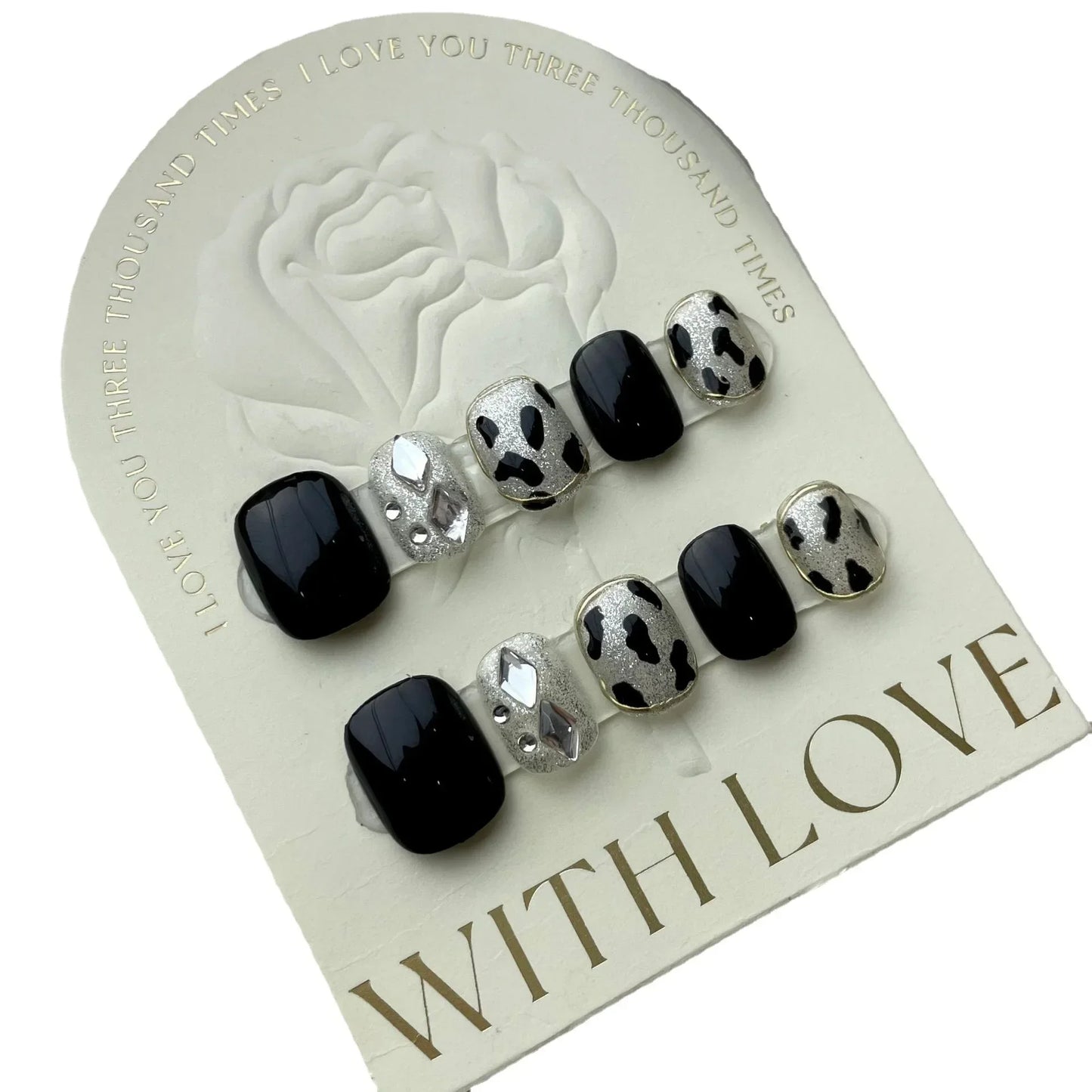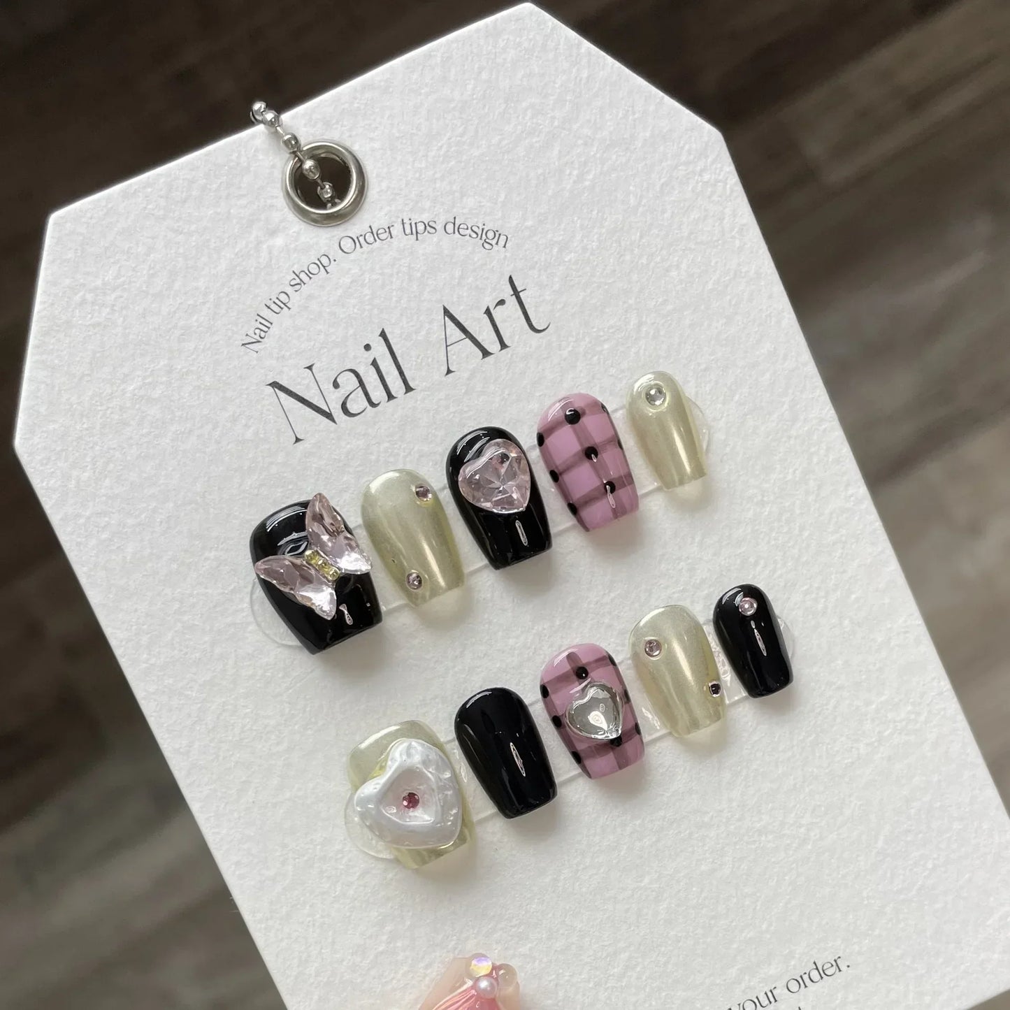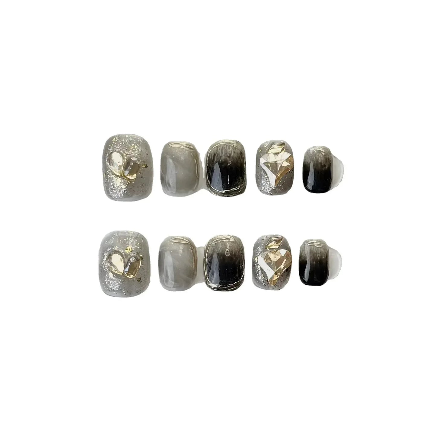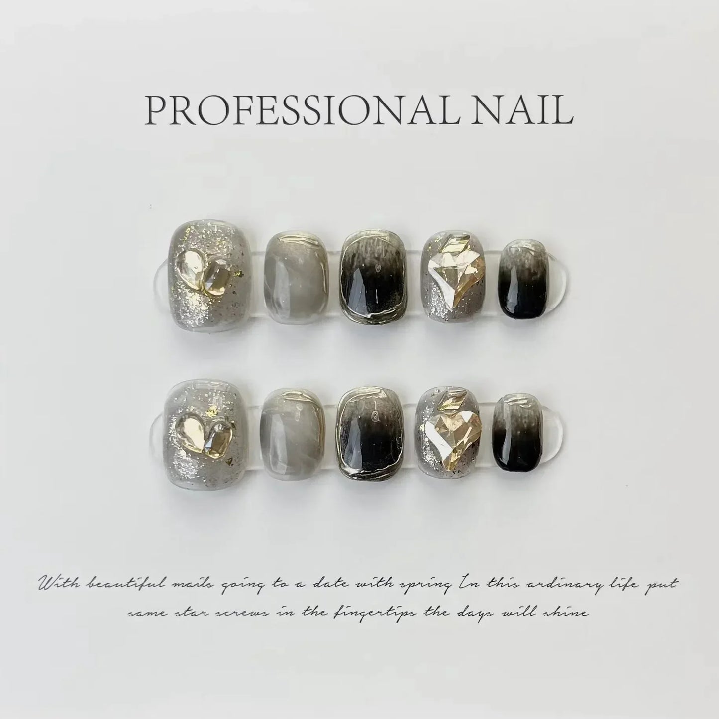 10Pcs Glitter Handmade Short Press On Nails Heart Design Reusable False Nails Full Cover Wearable Artificial Nail Tips For Girl