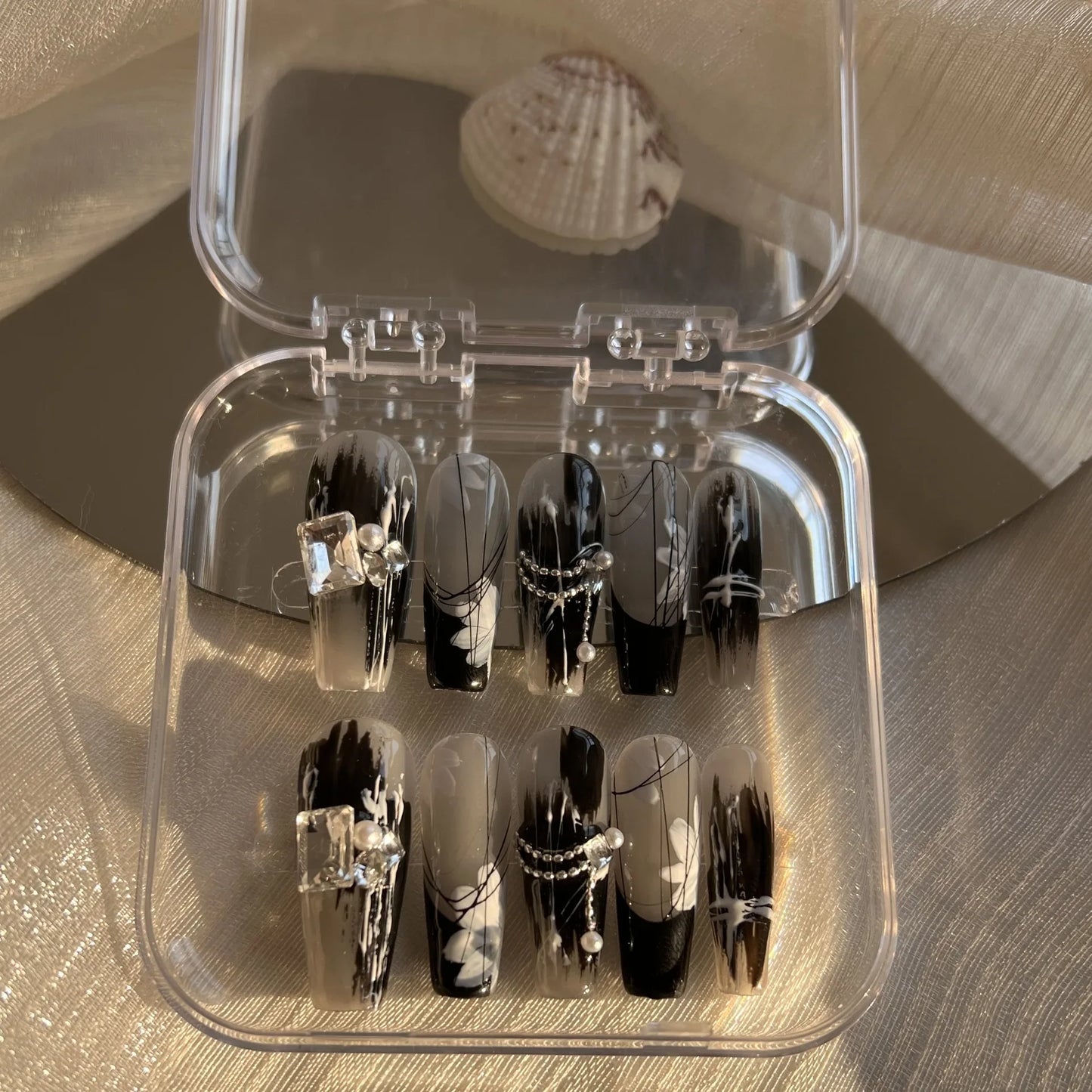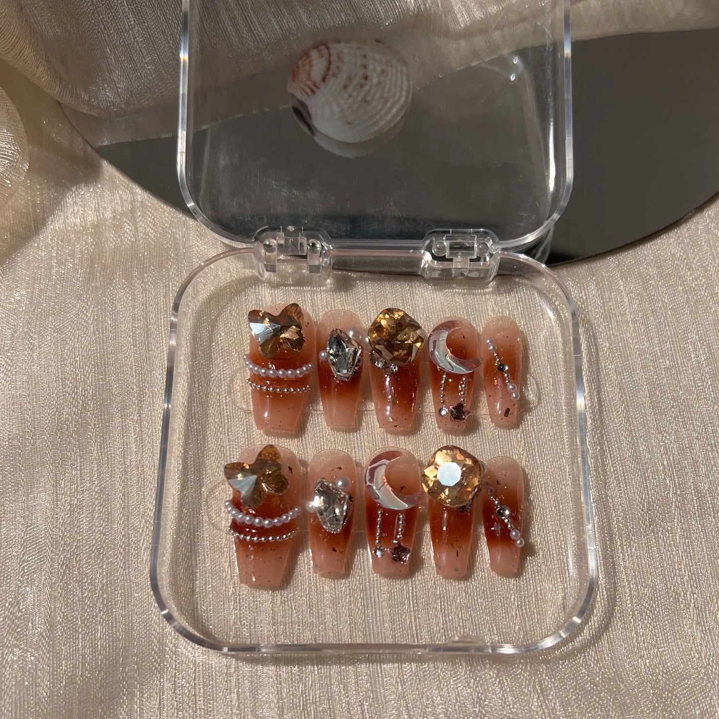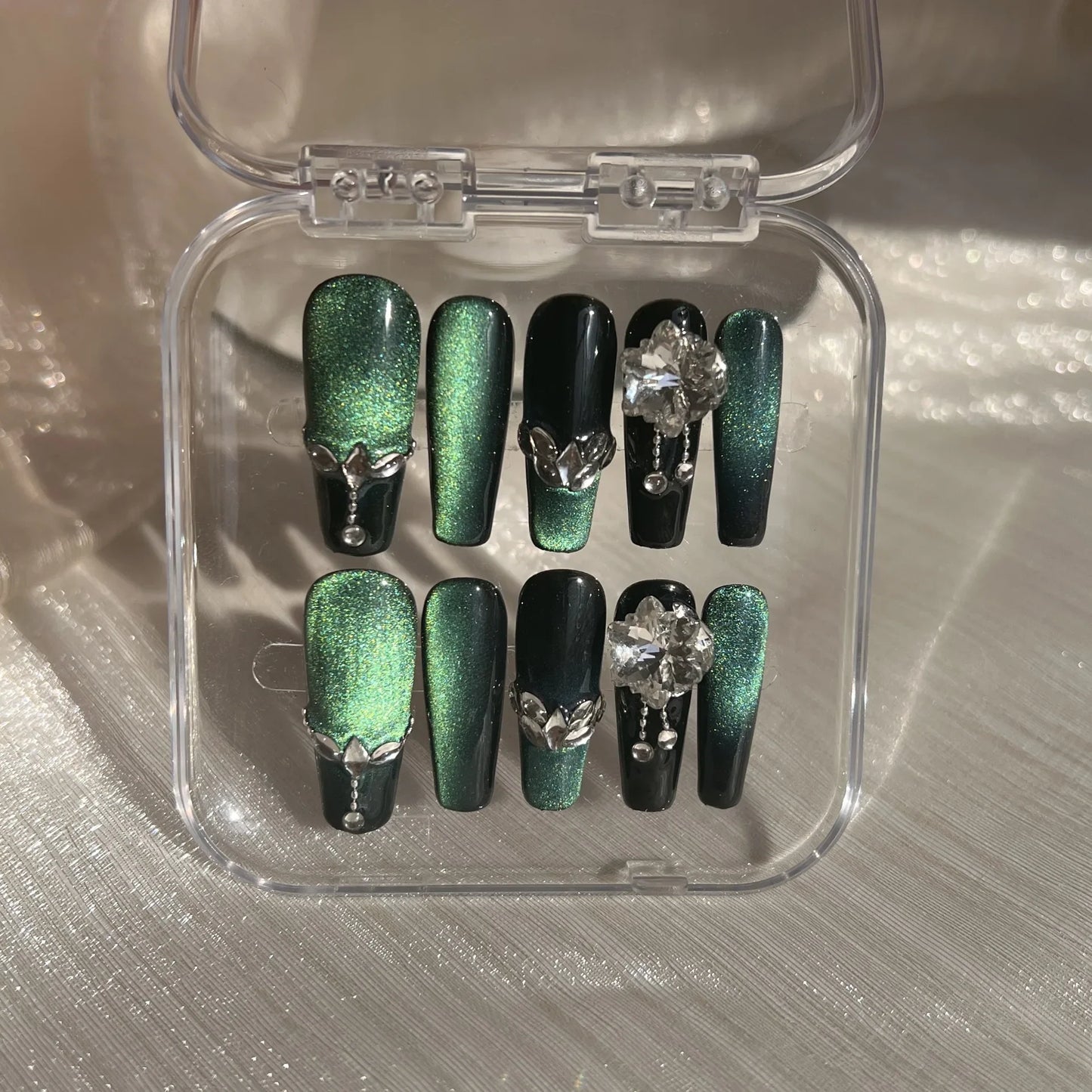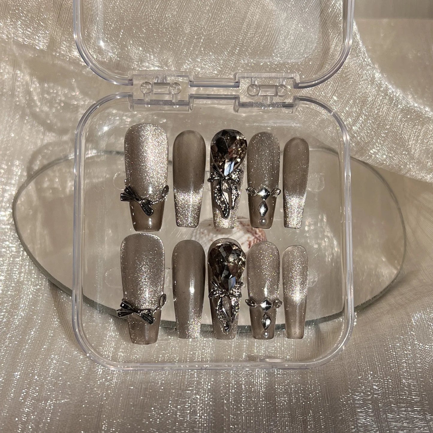 Size: handmade fake nails with glitter designs