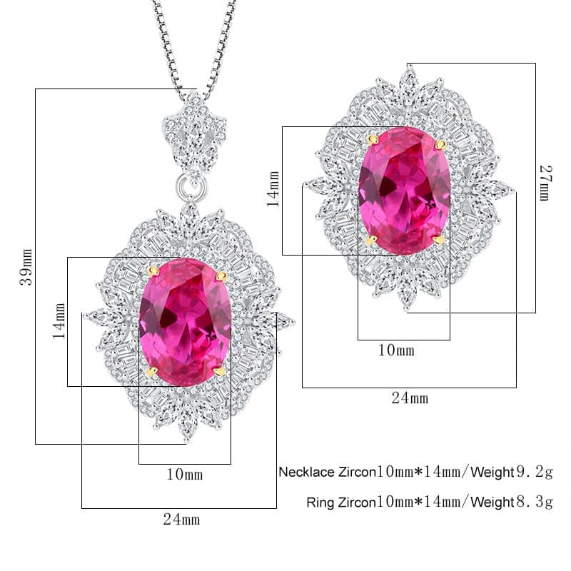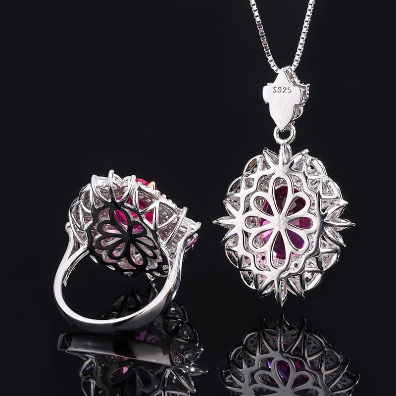 925 Silver Imitation Ruby Vintage Pendant Ring Set MSN110814