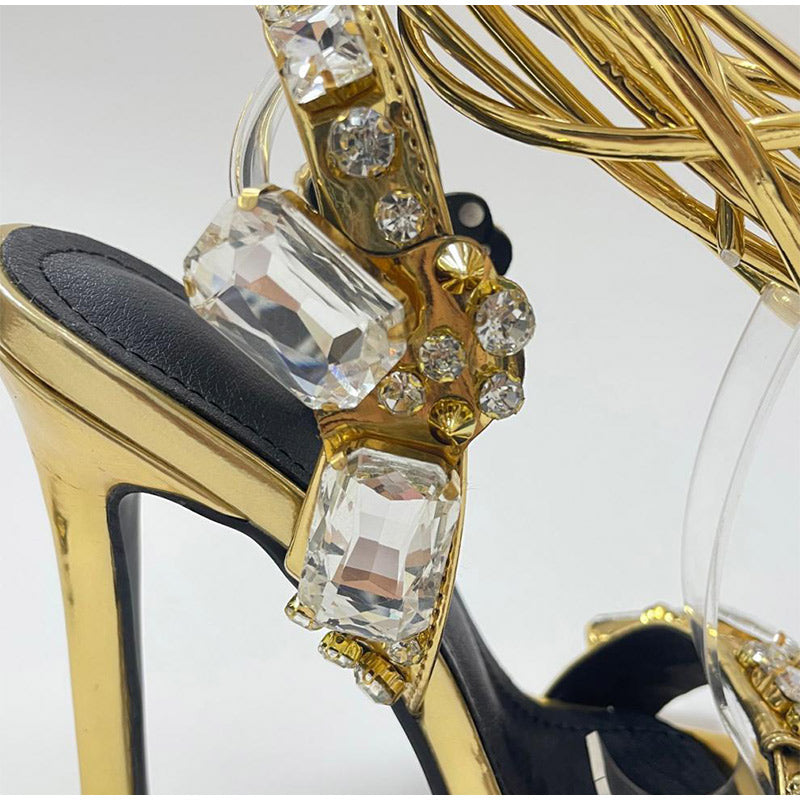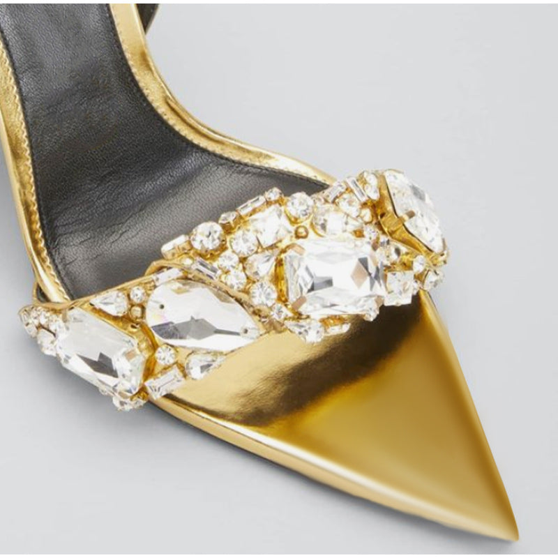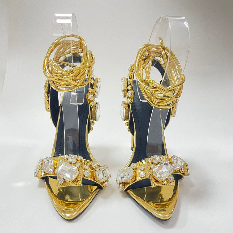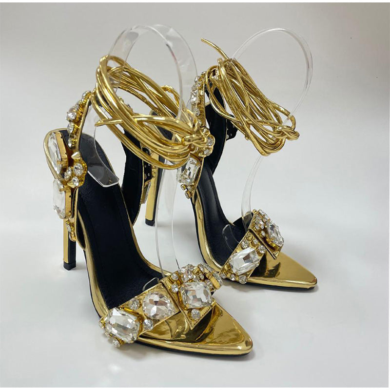 Women Sandals Female Pu Pointed Toe Crystal Fashion