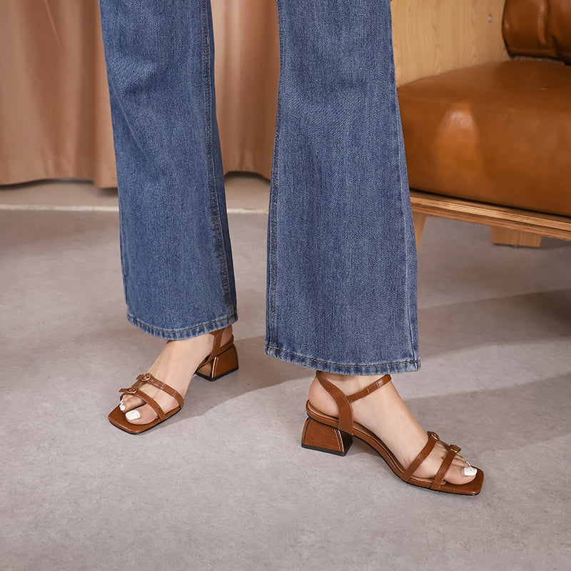 Women's Sandals Genuine Leather Buckle Strap