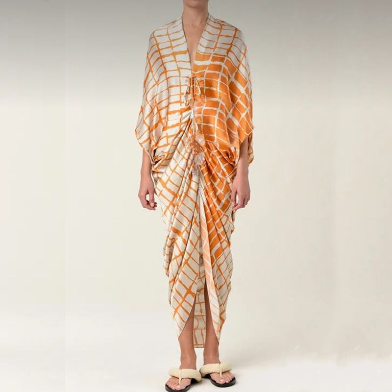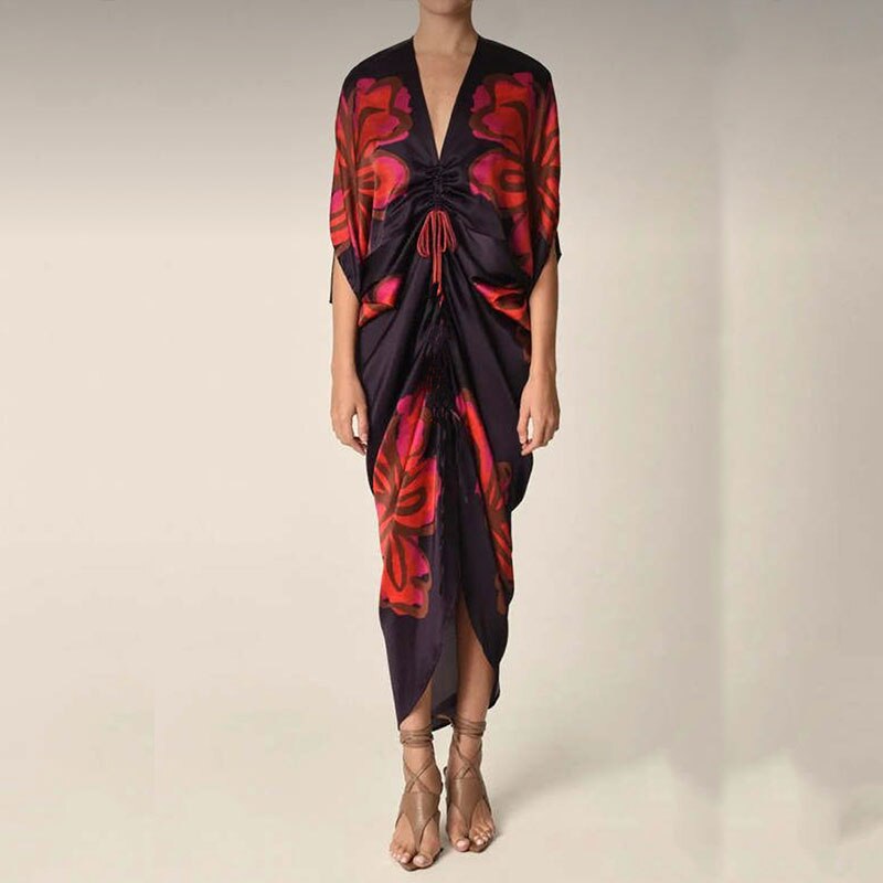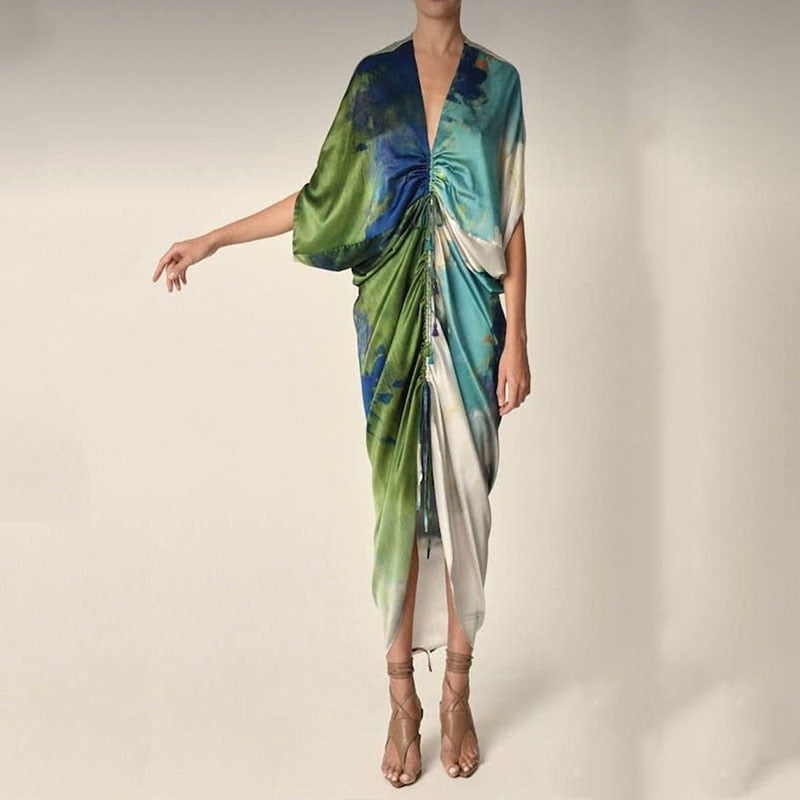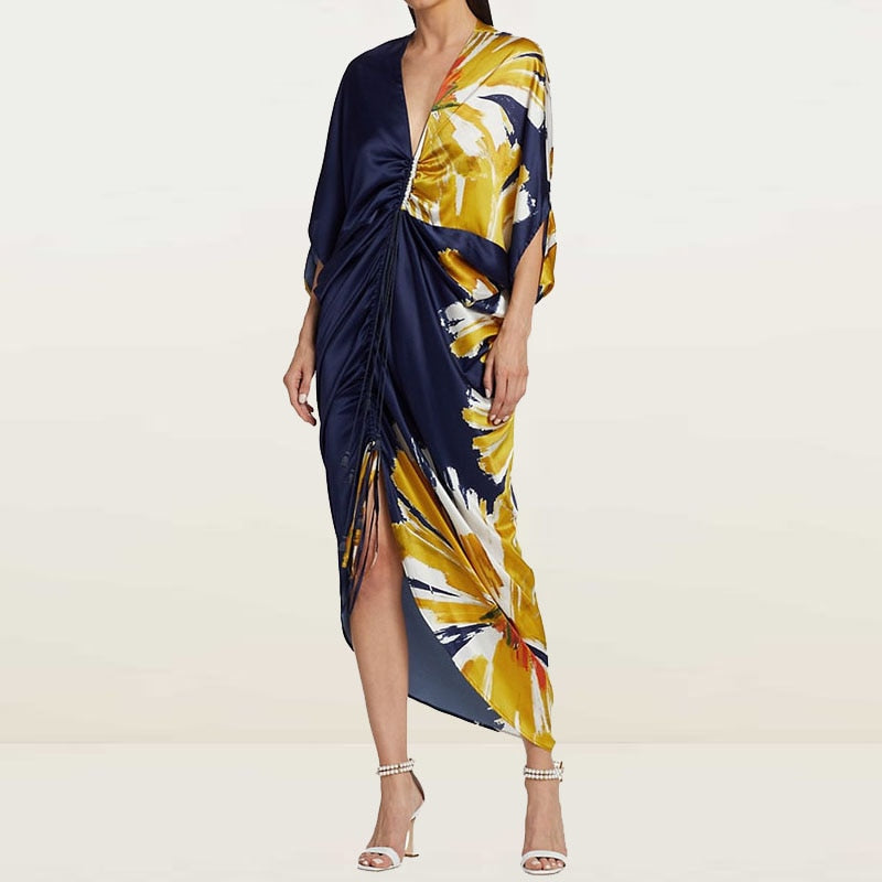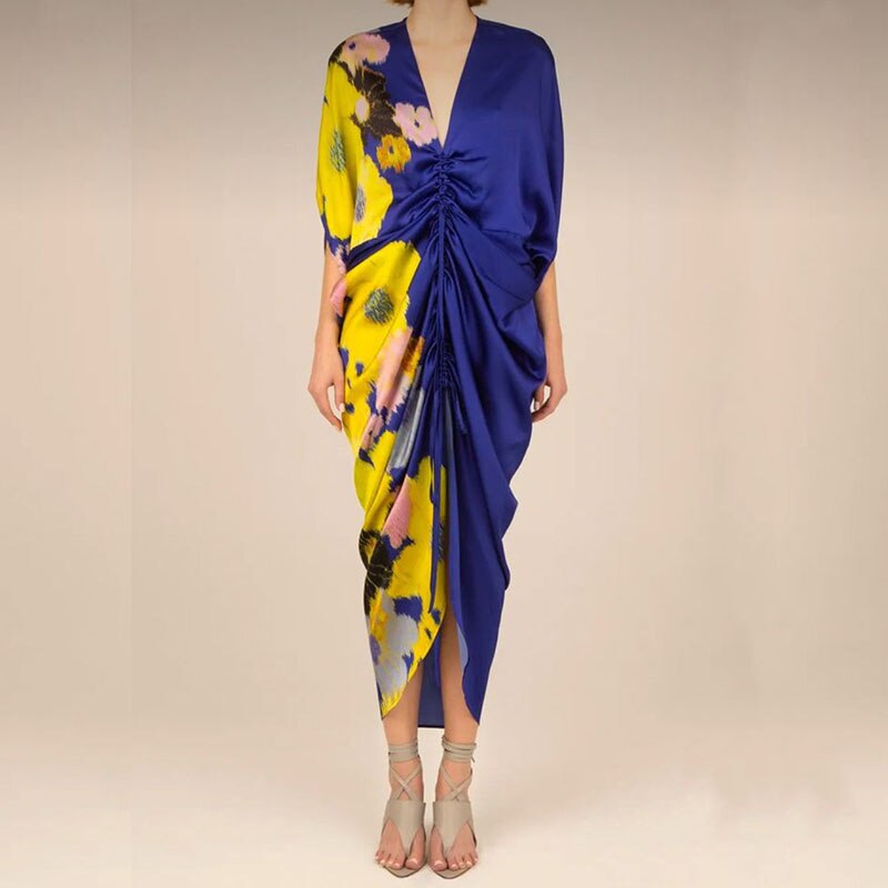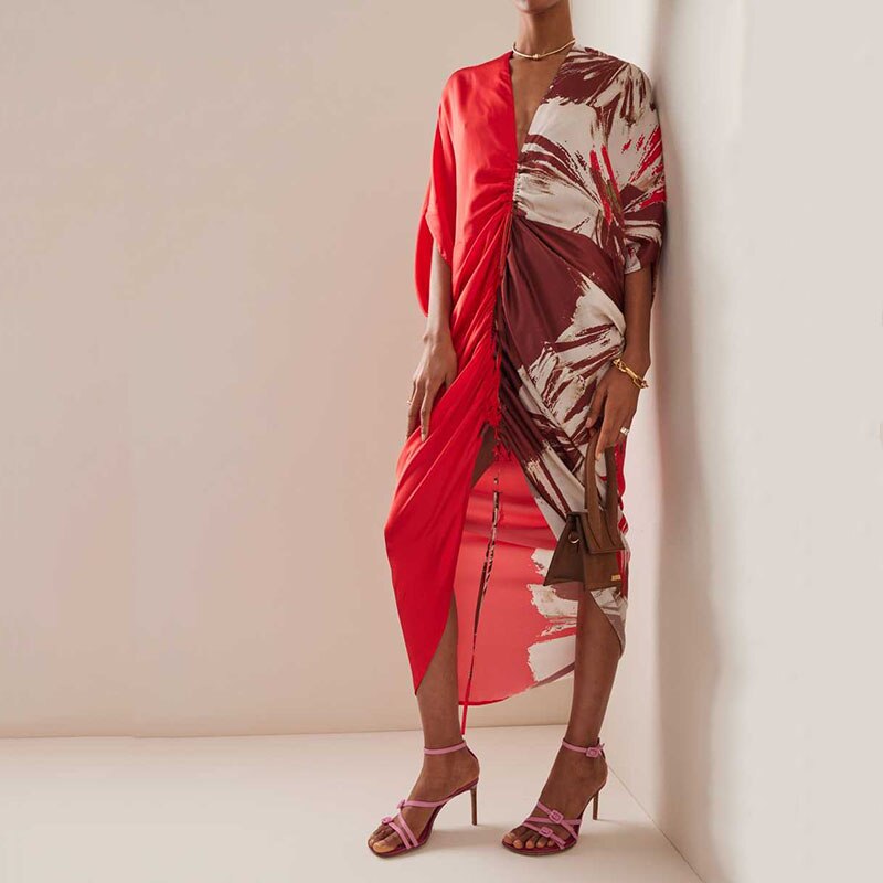 Modern cut, rich colors, unusual print and midi length will make your look bright and unique!