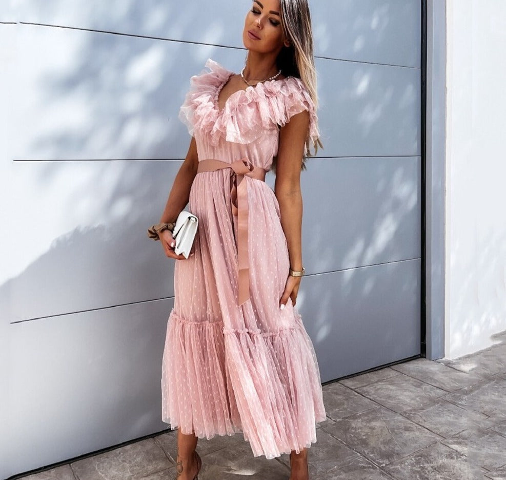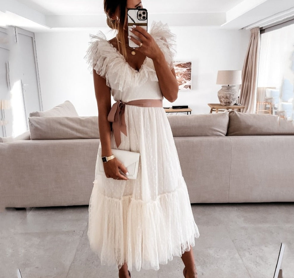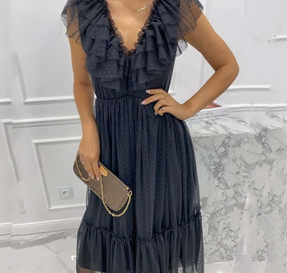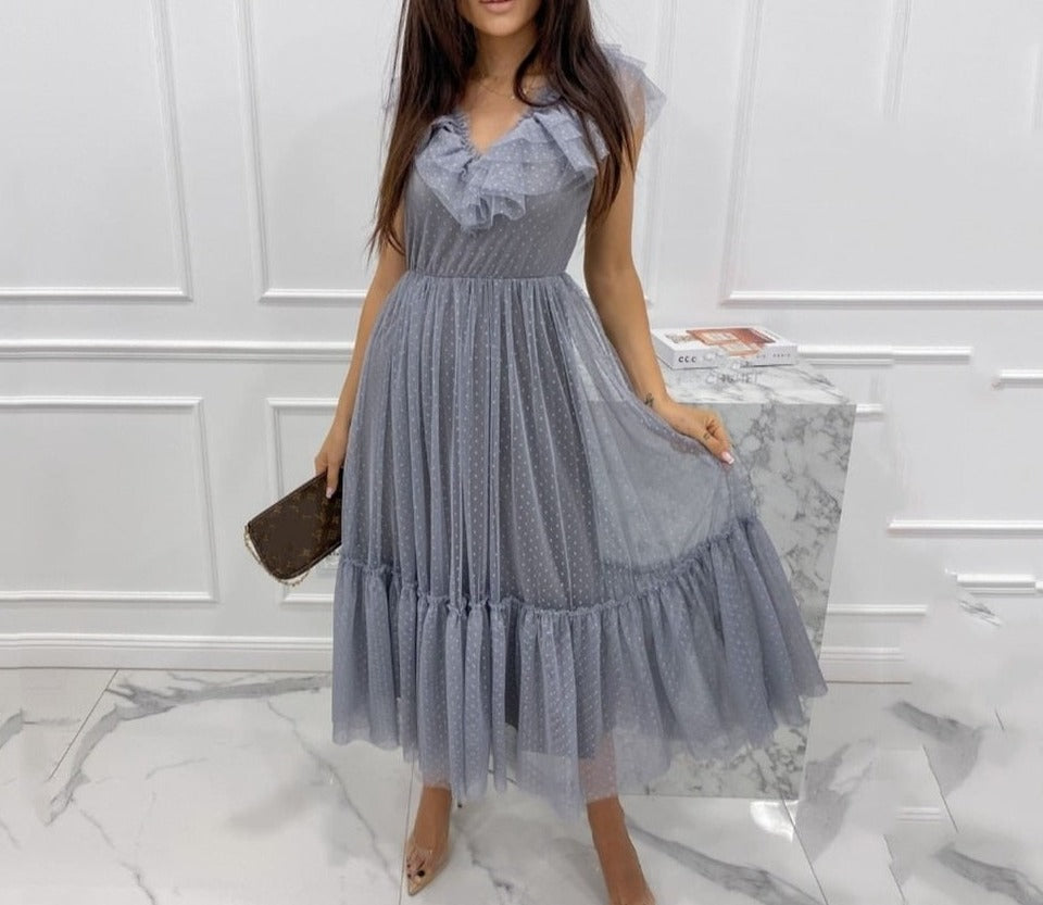 The midi length, emphasis on the waist and the V-neck will beautifully accentuate the bust and make your look interesting and memorable! The flowing fabric is pleasant to the touch and practical to wear: it practically does not wrinkle!