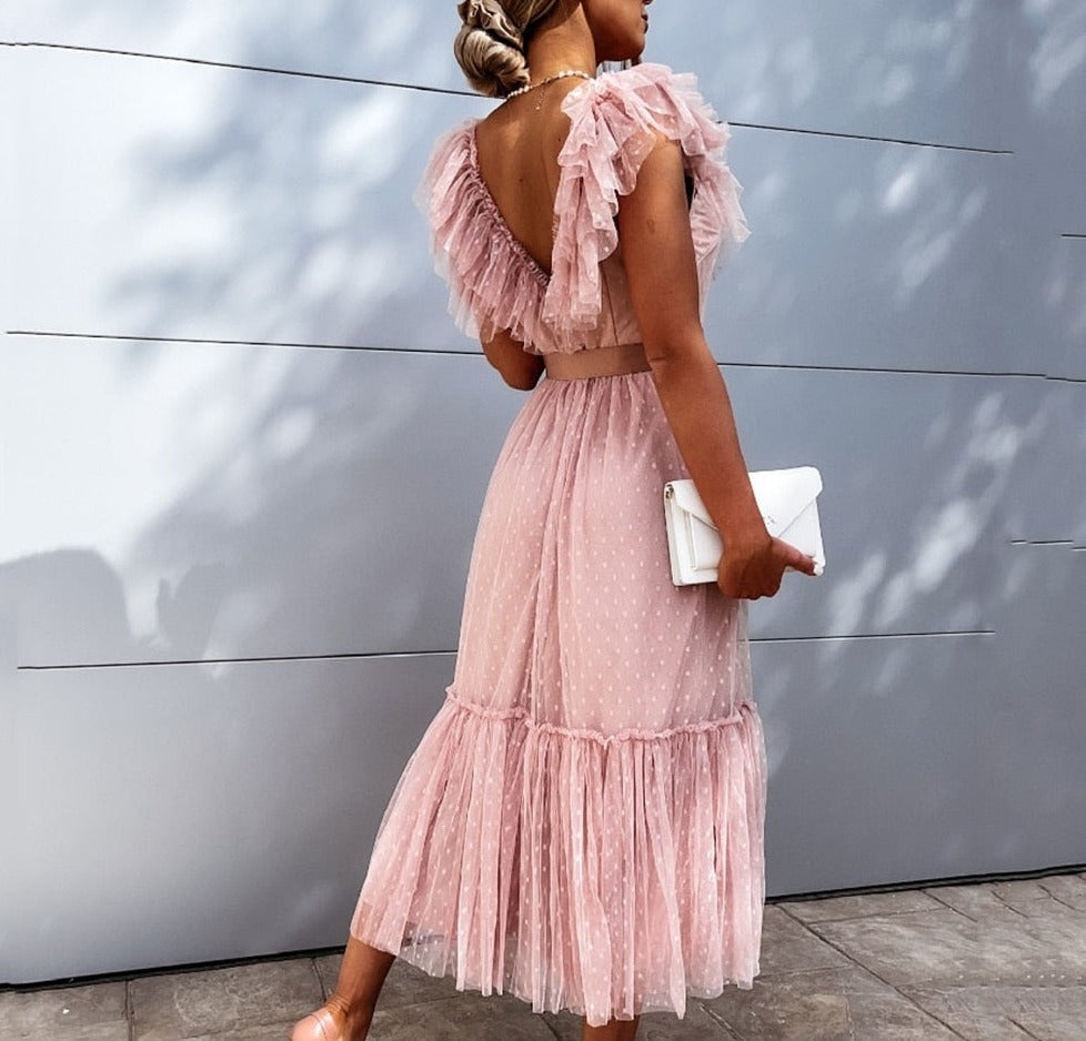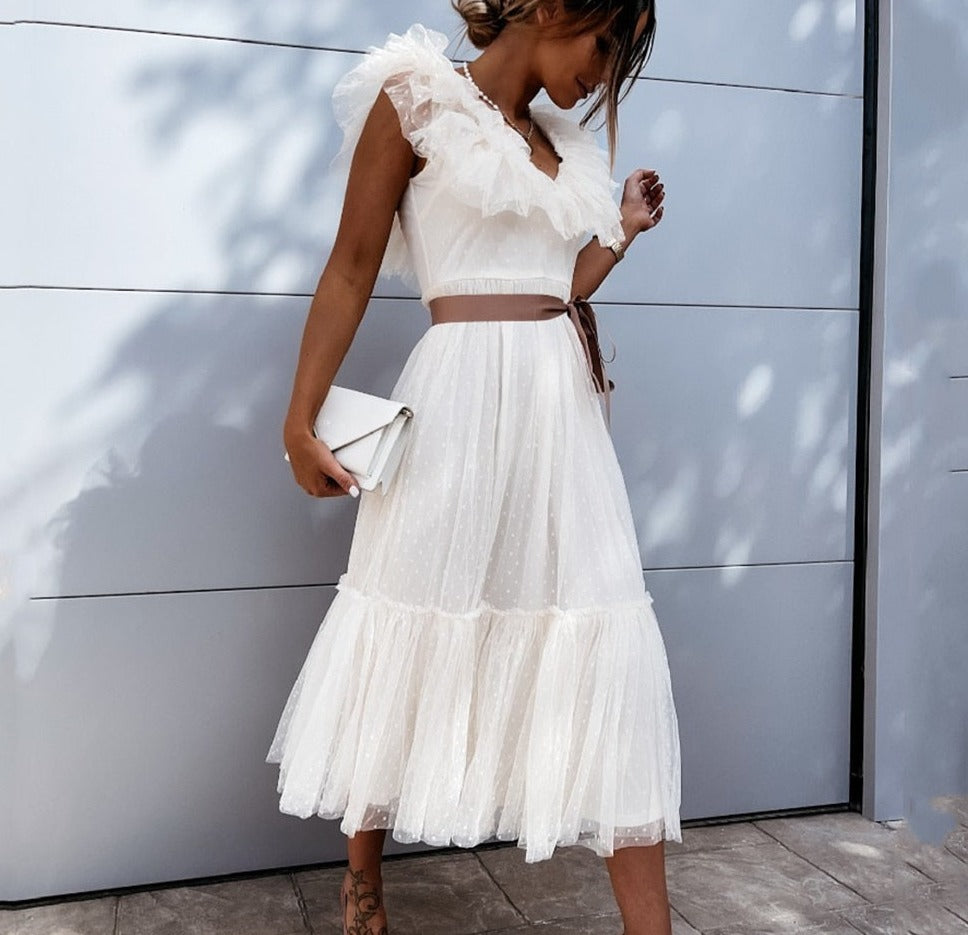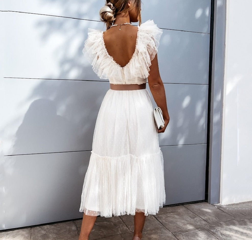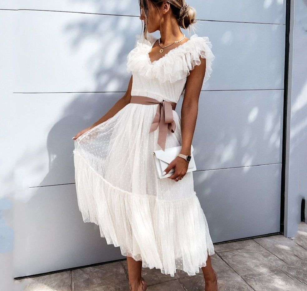 The midi length, emphasis on the waist and the V-neck will beautifully accentuate the bust and make your look interesting and memorable! The flowing fabric is pleasant to the touch and practical to wear: it practically does not wrinkle!