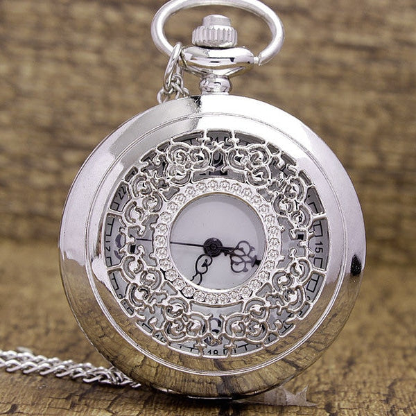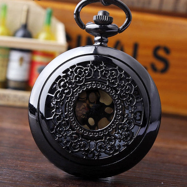 Antique Retro Fashion Unisex Black Hollow Round Glass Case Pocket FOB Watch