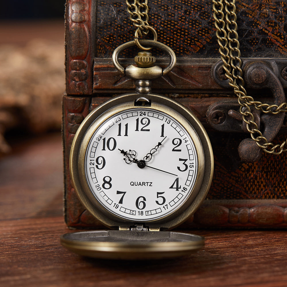This unisex pocket watch in an antique finish is for fashion lovers. The blend of fashionable bronze color and applaudable design will give an enticing feel. This antique pocket watch features a superb design and quartz movement, which will provide precise timekeeping. The alloy case protect engine components. Buy now!