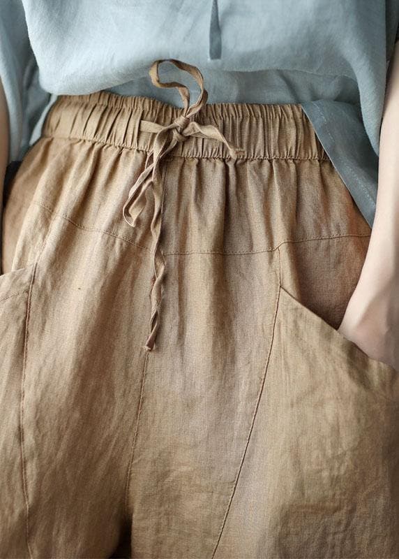 Art Khaki Tie Waist Pockets Summer Harem Pants Linen
