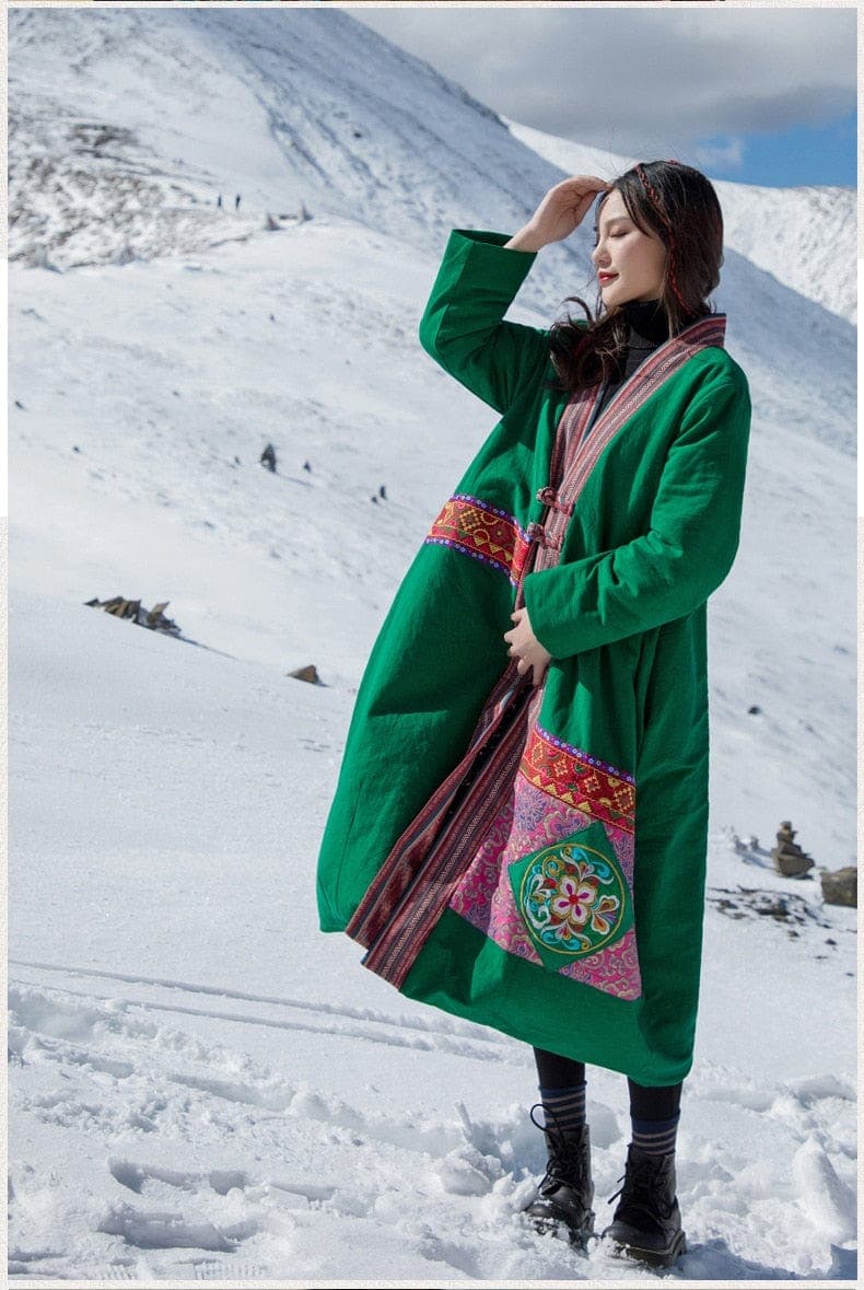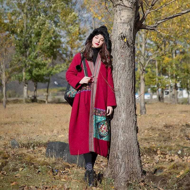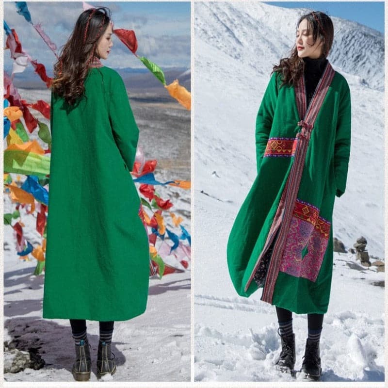 Throw on the Artful Patchwork Long Trench Coat as temperatures begin to cool, a refined winter coat with a button front fastening, loose silhouette, and long sleeves. Featuring a patchwork design, side pockets, and is made from soft cotton and linen material. Slip-on over a thin knit and jeans for a versatile everyday look.