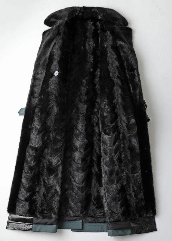 Beautiful Blue Fox collar Bouble Breast Pockets Sashes Leather And Fur Lengthen Parkas Winter